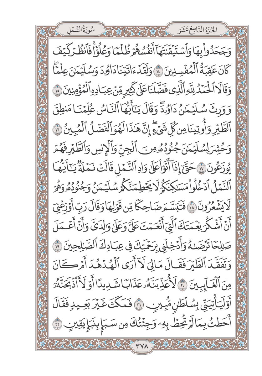 19. maka dia tersenyum dengan tertawa karena (mendengar) perkataan semut itu. Dan dia berdoa: "Ya Tuhanku berilah aku ilham untuk tetap mensyukuri nikmat Mu yang telah Engkau anugerahkan kepadaku dan kepada dua orang ibu bapakku dan untuk mengerjakan amal saleh yang Engkau ridhai; dan masukkanlah aku dengan rahmat-Mu ke dalam golongan hamba-hamba-Mu yang saleh".