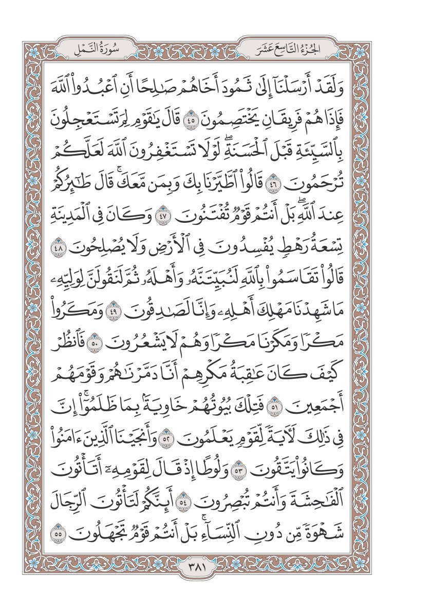 45. Dan sesungguhnya Kami telah mengutus kepada (kaum) Tsamud saudara mereka Shaleh (yang berseru): "Sembahlah Allah". Tetapi tiba-tiba mereka (jadi) dua golongan yang bermusuhan.