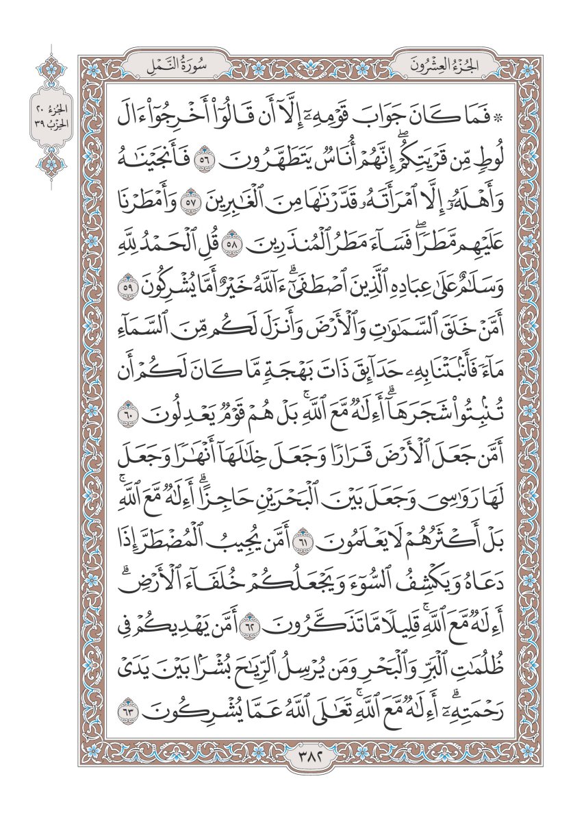 59. Katakanlah: "Segala puji bagi Allah dan kesejahteraan atas hamba-hamba-Nya yang dipilih-Nya. Apakah Allah yang lebih baik, ataukah apa yang mereka persekutukan dengan Dia?"